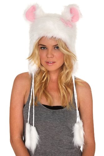 You'll get the party hopping with this furry white rabbit hat. With a pink bow and dangling little bunny feet, you'll keep your head warm and your fashion fun!