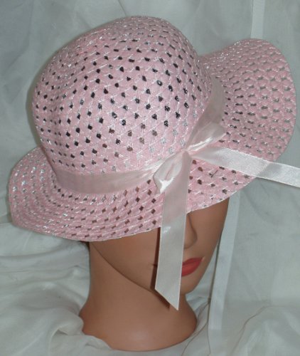 Beautiful soft pink Easter Bonnet, best for little girls ages 3 through 7. Soft woven pink with grosgrain ribbon.